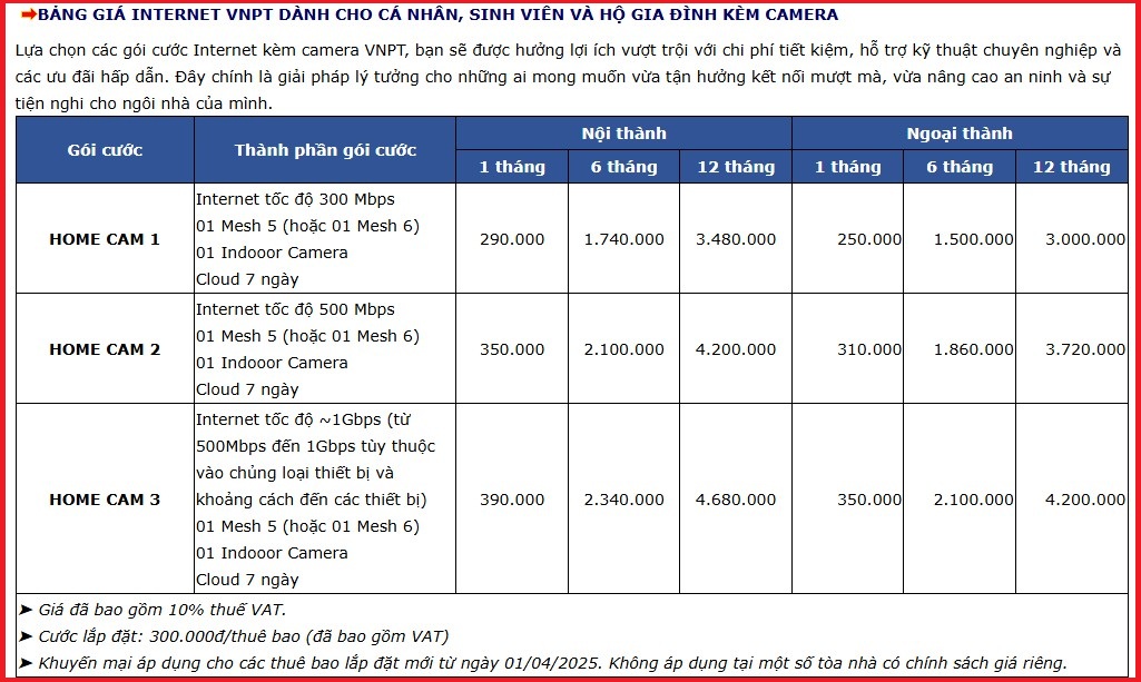 Bảng Giá Internet Cho Cá Nhân, Sinh Viên Và Hộ Đình Kèm Camera Mới Nhất